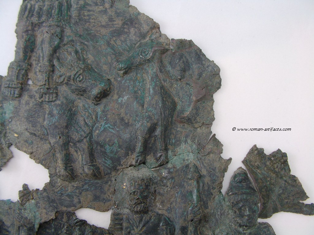 large Jupiter Dolichenus Bronze Plaque or Standard in the shape of a triangle. The