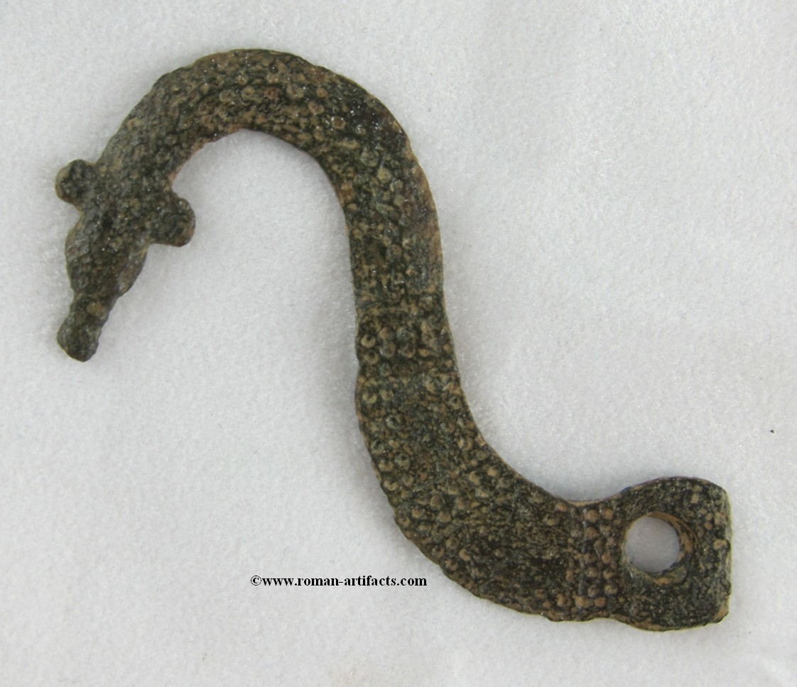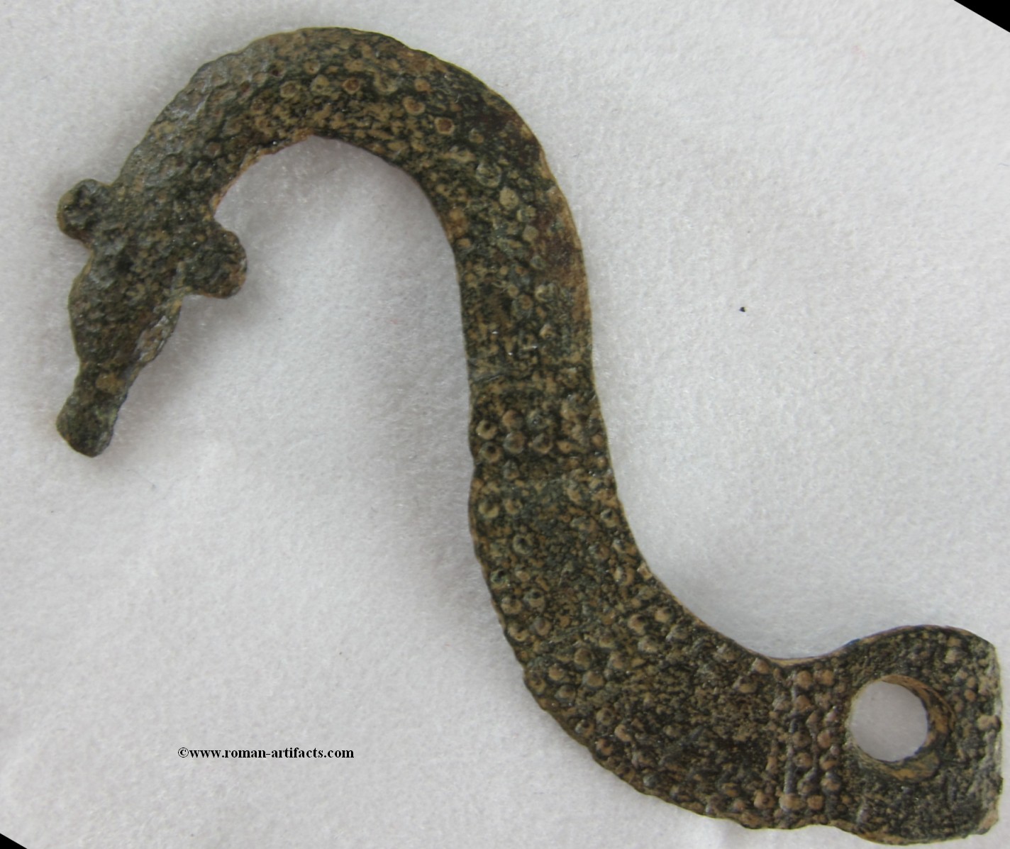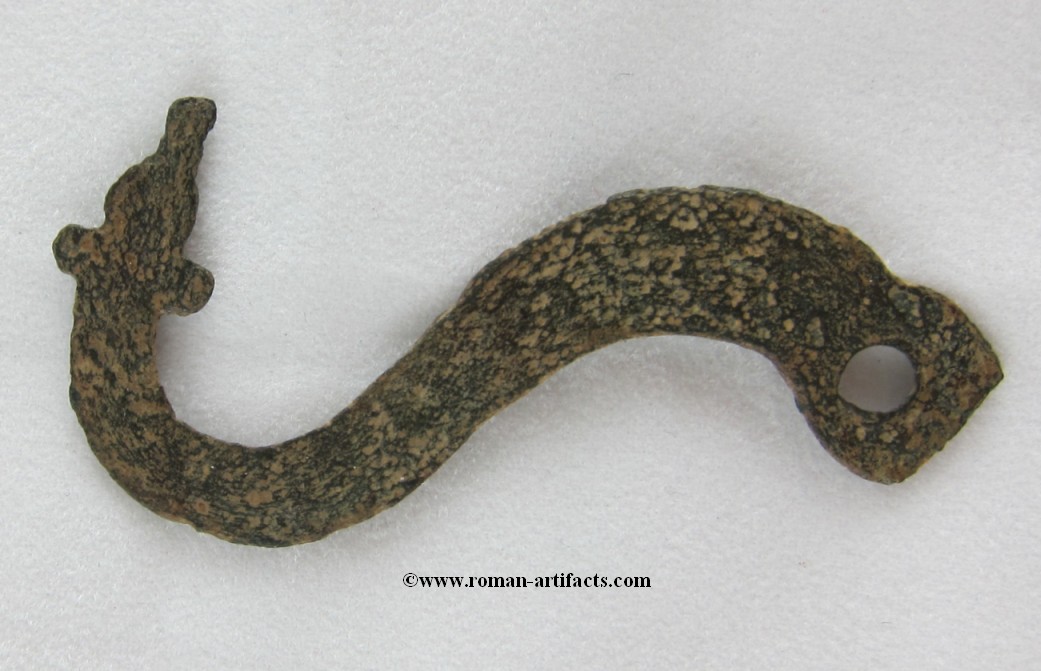 that make a pair would have been joined with a hinge in the center. It has an intricate dot and line pattern on the surface for decoration. These hooks were designed to decoratively and functionally hold the