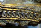 SECONDARY HELMET FRAGMENTS: The secondary helmet fragments can be broken down as follows: Main Bowl Fragment (second helmet): This fragment consists of more than 50% of a complete helmet bowl half. This helmet however has a different "punched" pattern, consisting of numerous raised "S" letters, surrounded by a line pattern (two lines, then "S" and then the last border line). The design pattern is also similar to one of the Augsburg helmets, in that both have the "S" pattern in them, surrounded by a border. The following is a close up of the pattern on this fragment, compared to the Augsburg pattern: