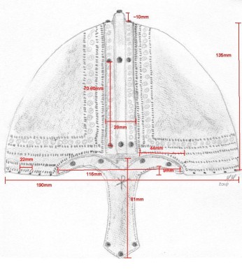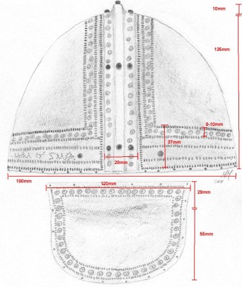 Click on Pictures for higher resolution Reproduction in silver gilt plating of Main Helmet DIMENSION/MEASUREMENT SKETCHES