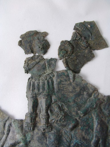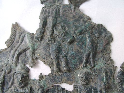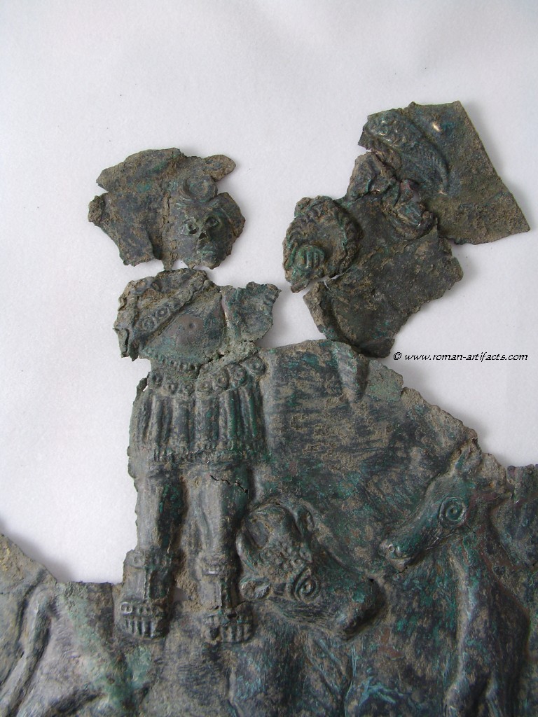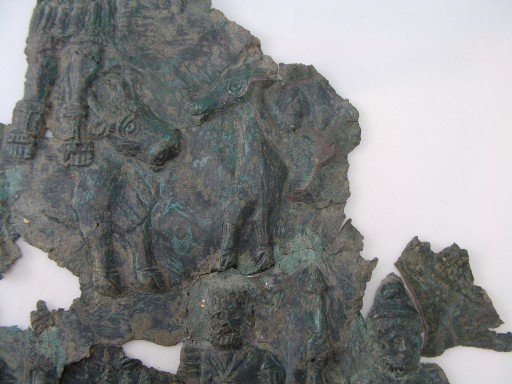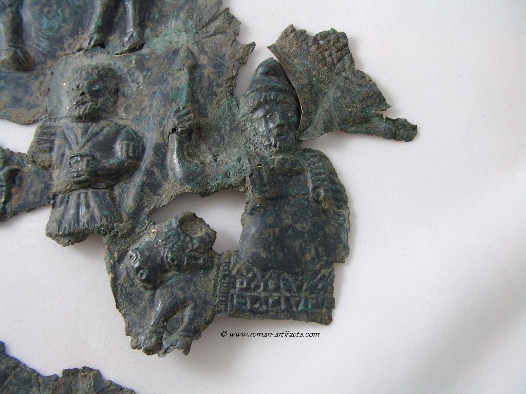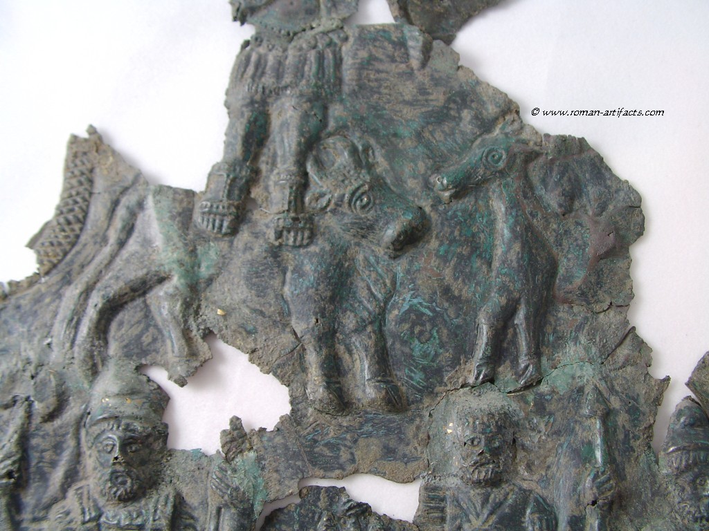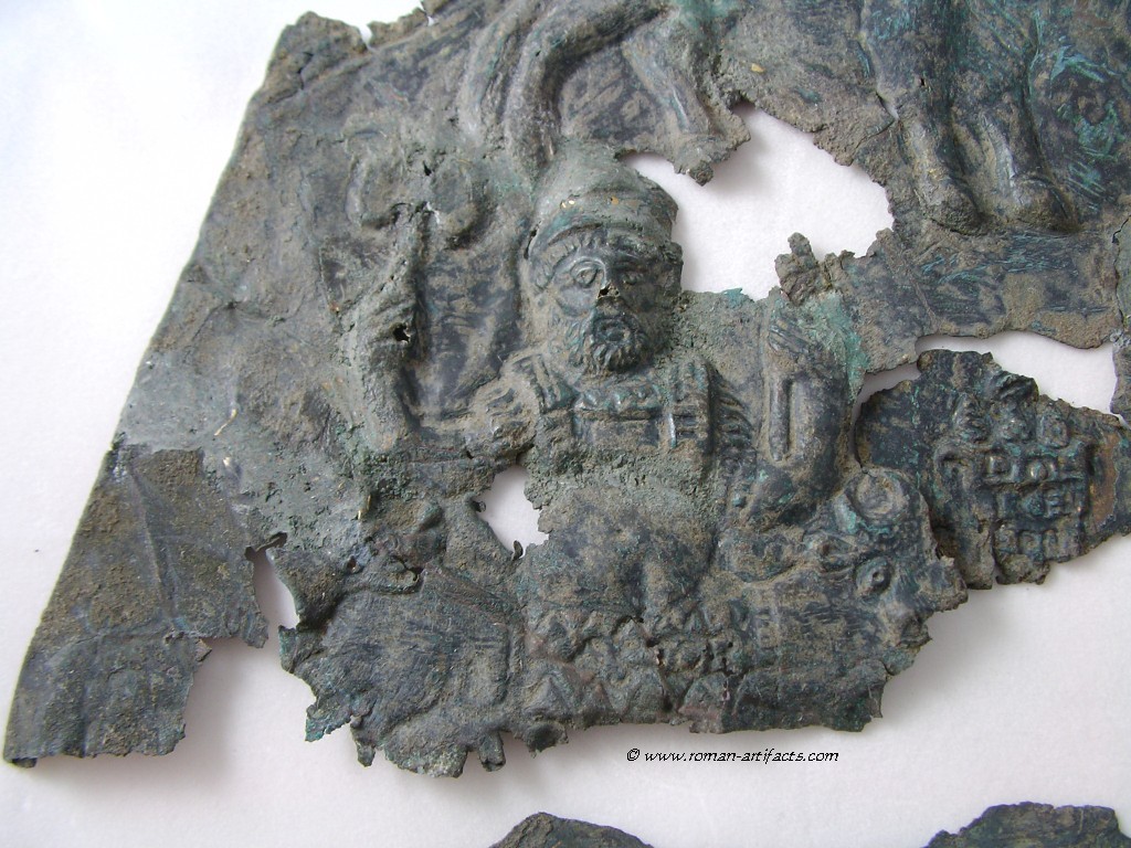 large Jupiter Dolichenus Bronze Plaque or Standard in the shape of a triangle. The
