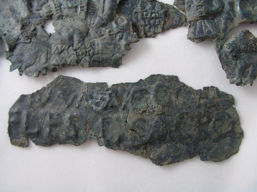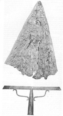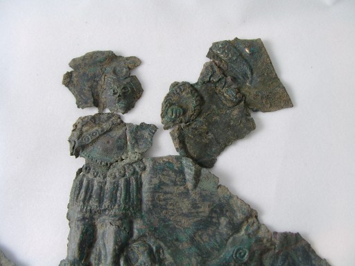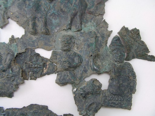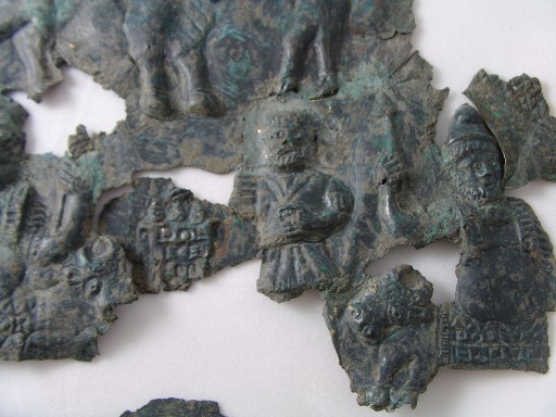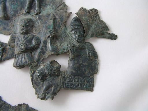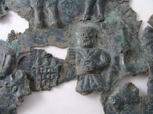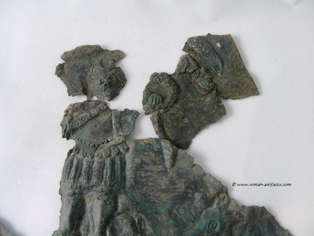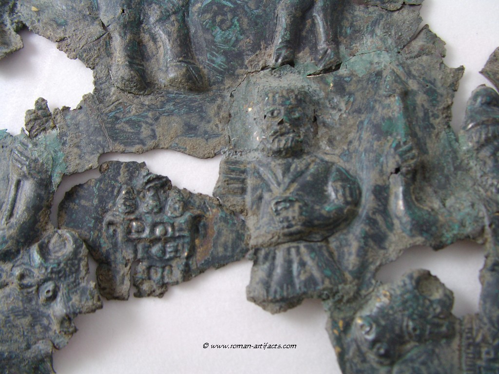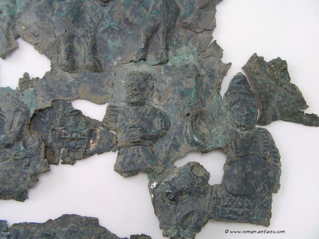 large Jupiter Dolichenus Bronze Plaque or Standard in the shape of a triangle. The